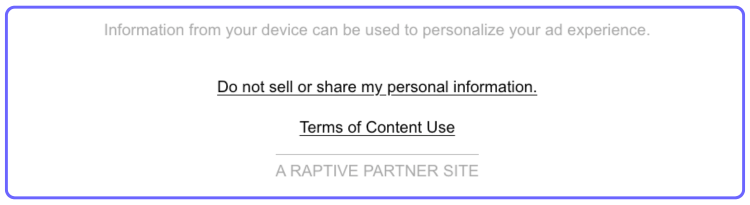 At the bottom of every site that works with Raptive, we add a link that reads “Do not sell or share my personal information.”