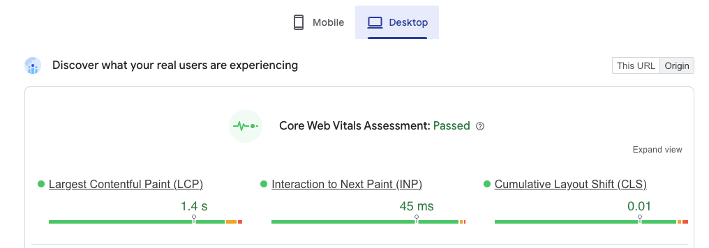 We recommend focusing your optimization efforts on passing all Core Web Vitals metrics in the Field Data section, as that’s what affects both user experience and search ranking.