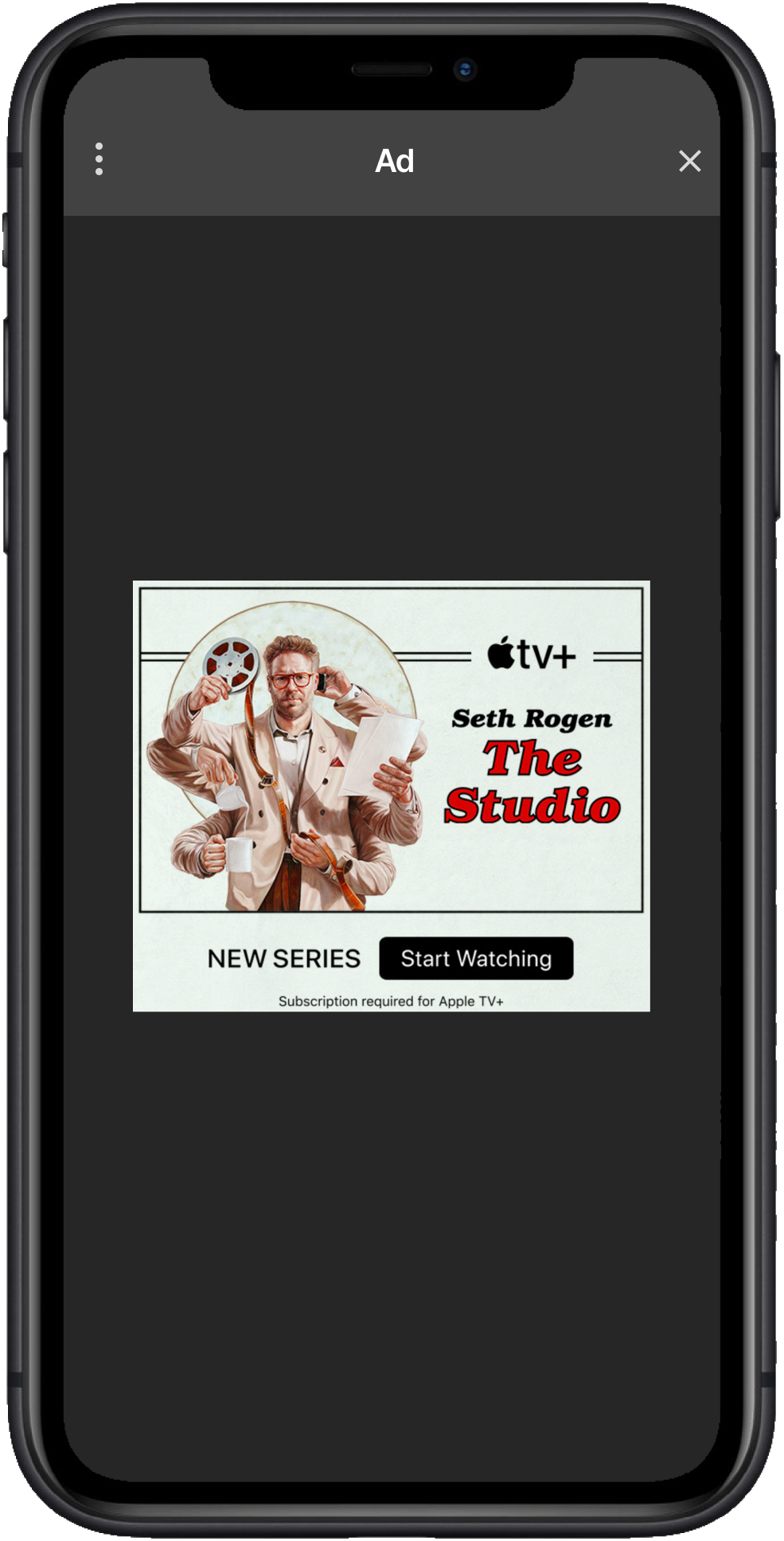 Interstitials can appear as set-sized ads with dark opaque backgrounds or as full-screen experiences. Interstitial ads will always contain a close button.